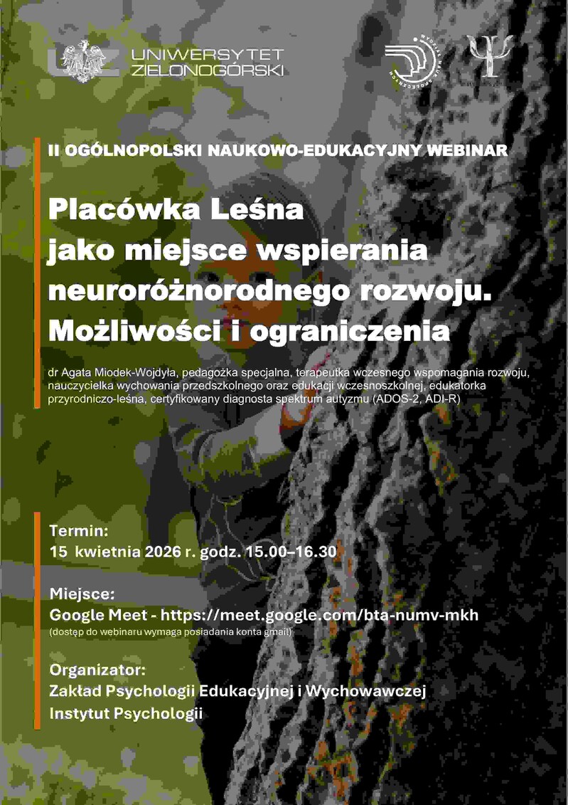 Zakład Psychologii Edukacyjnej i Wychowawczej Instytutu Psychologii zaprasza na II OGÓLNOPOLSKI NAUKOWO-EDUKACYJNY WEBINAR problemowo korespondujący z kwestiami analizowanymi na interdyscyplinarnych Ogólnopolskich Konferencjach Naukowych