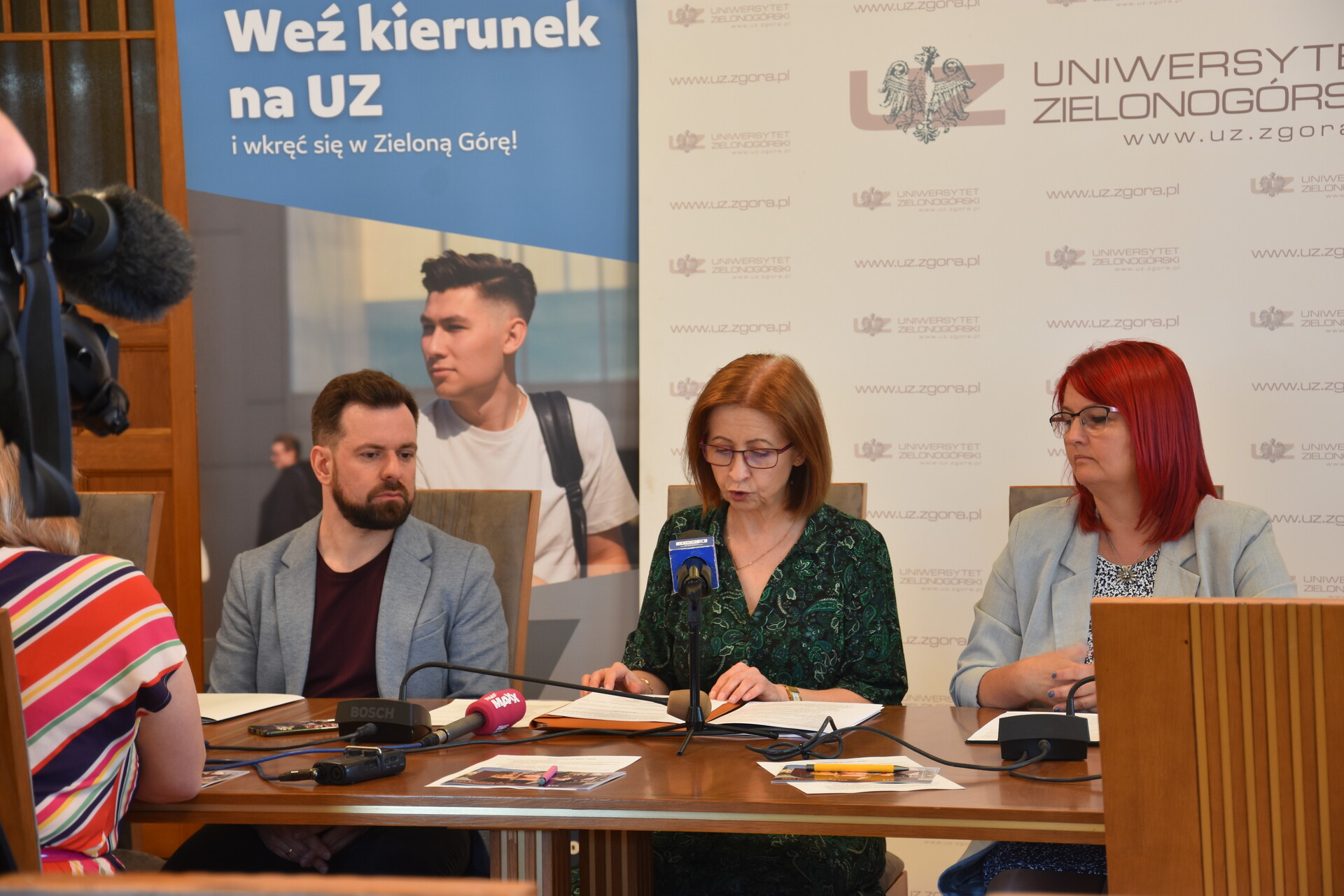 Konferencja prasowa - Rekrutacja 2023/24: dr Arkadiusz Tyda, dr hab. Barbara Literska, prof. UZ, dr hab. inż. Sylwia Myszograj, prof. UZ, fot. Biuro Promocji UZ